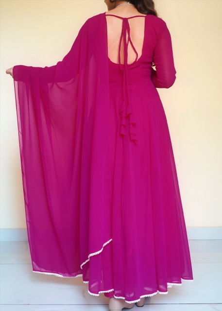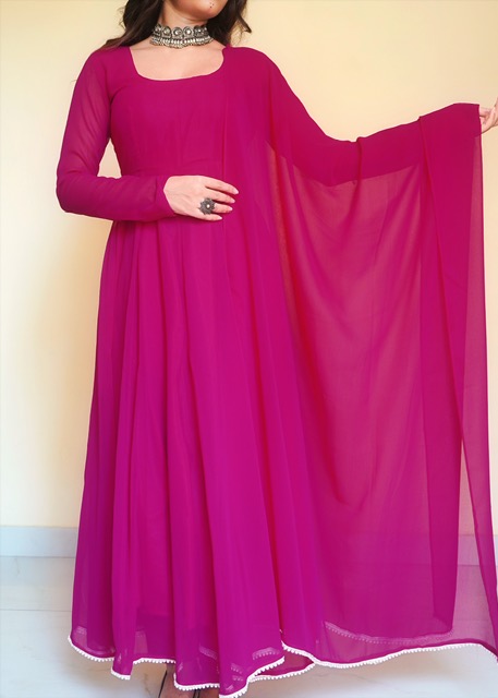 Fuchsia Pink Color Georgette Anarkli Suit Set